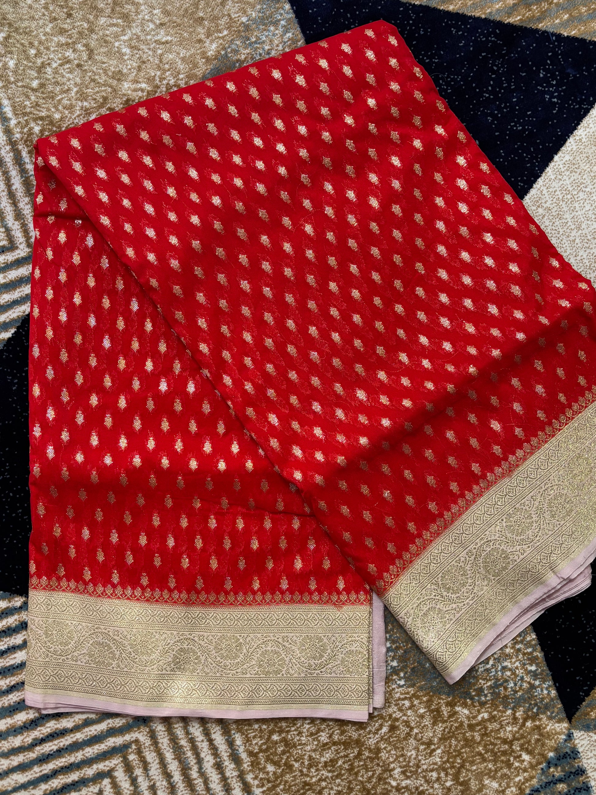 A Semi banaras kaddi georgette Saree has it's a legacy of comfort, luxury, and cultural heritage woven into six yards.