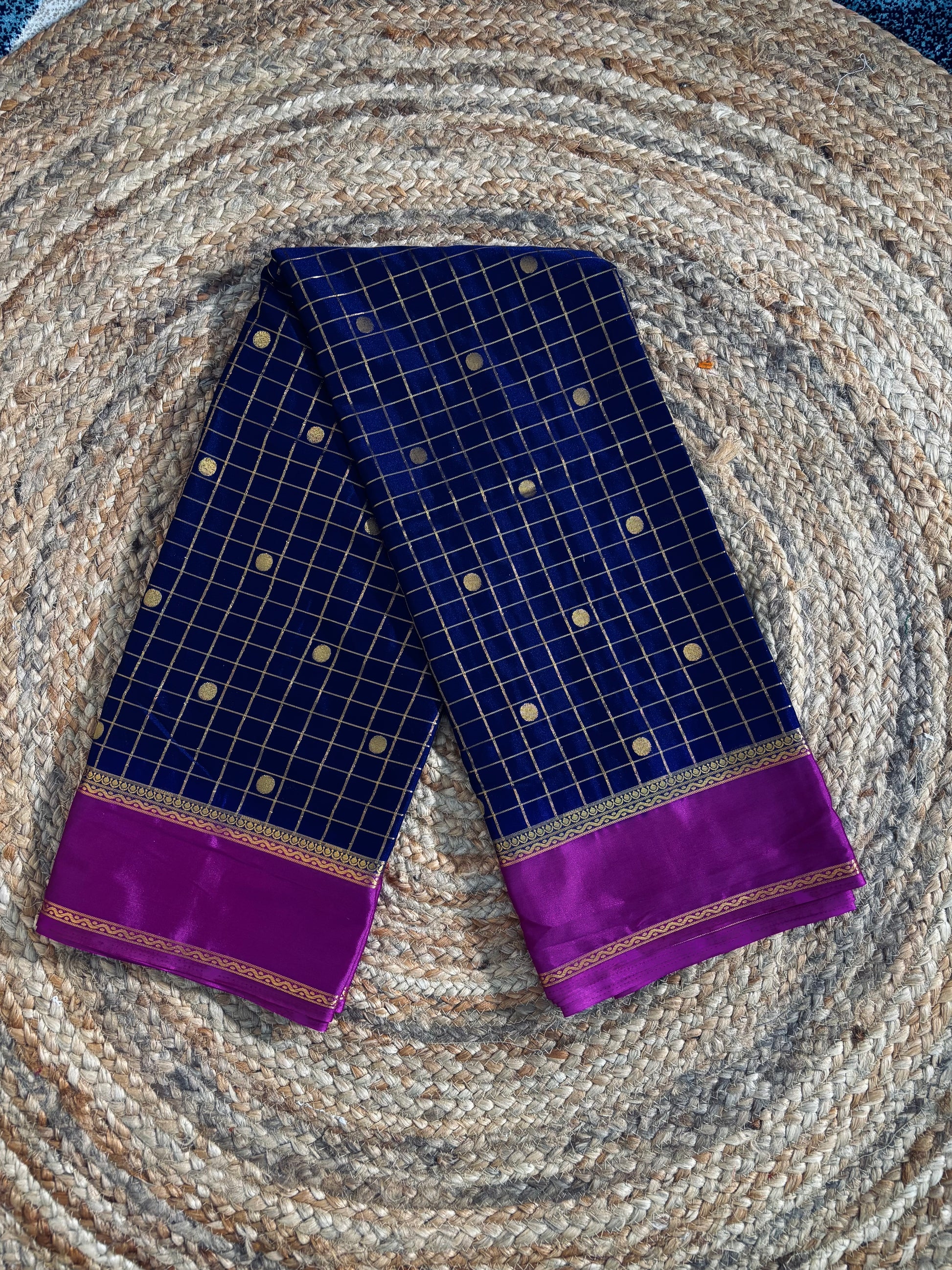 Semi Mysore silk saree - comfort, budget friendly and cultural heritage woven into six yards in Karnataka. Saree comes in checkered pattern along with the butta.