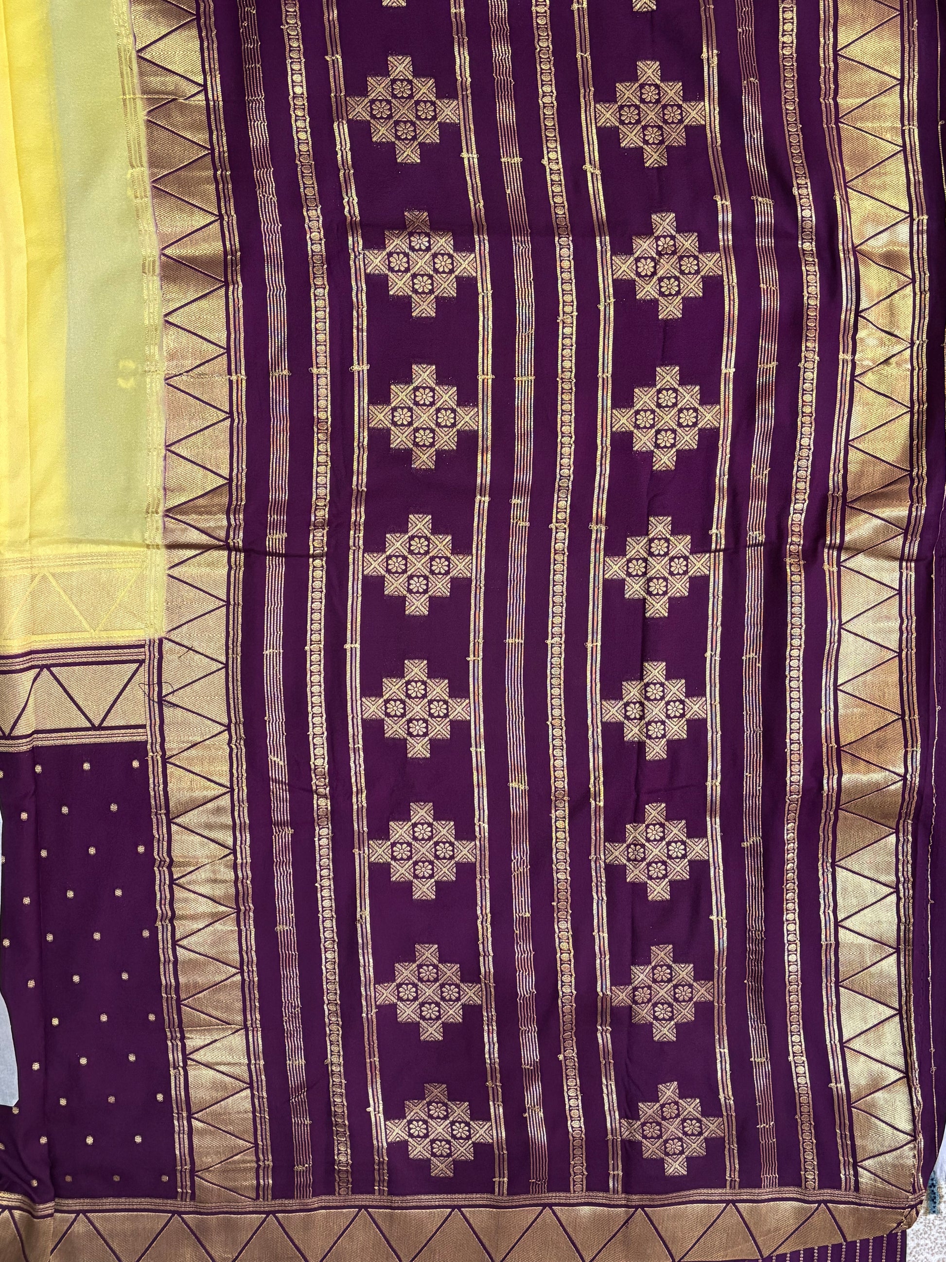 Viscose four border saree - comfort, budget friendly and cultural heritage woven into six yards in Karnataka. Saree comes in checkered pattern along with the border.